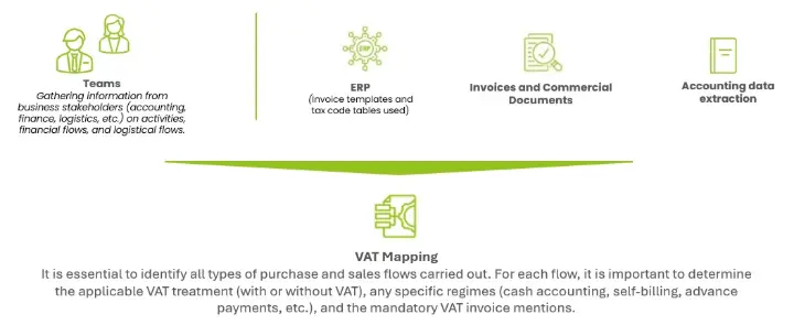Notre démarche repose sur un principe fondamental : un paramétrage TVA pertinent ne peut être défini qu’à partir d’une cartographie des flux réels de l’entreprise.